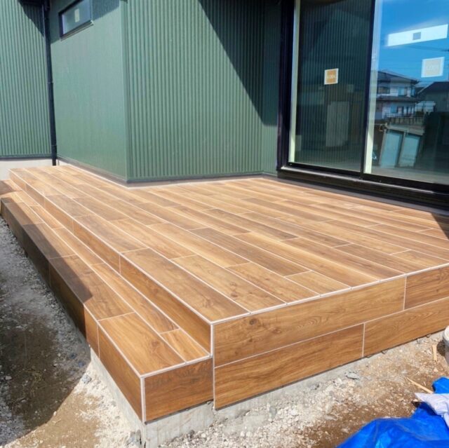 4月の完成見学会の現場のタイルデッキです!!