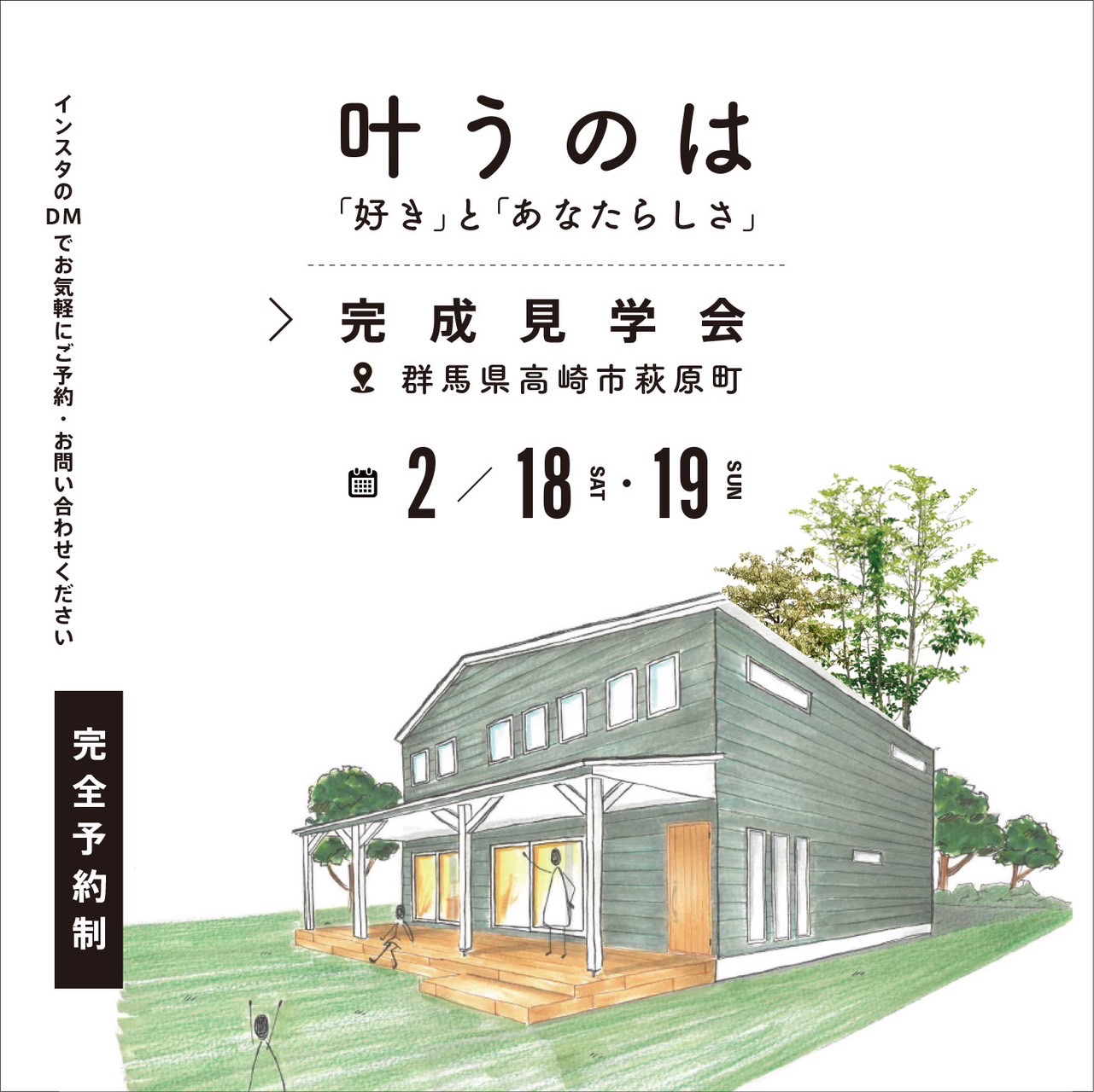 お客さまの「熱い思い」と「こだわり」を最大限、カタチにした完全予約制の完成見学会ですので、