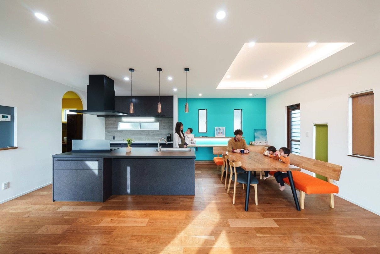 ご主人も奥様も、本当にお会いするたびにこちらが元氣をいただいてしまうような、底抜けに前向きで明るいお二人。そんなお二人と一緒に作り上げたこの家は、まさにポジティブの塊のような、最高に居心地の良い空間になりました。